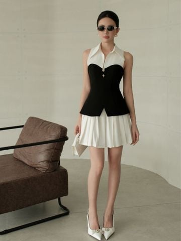 - Đặc điểm nổi bật: Đầm liền form gile tùng xếp li/ - Dây kéo sau lưng