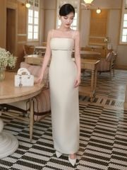 - Đặc điểm nổi bật: Form body suông dài/ Dây vai có đính đá phale trong/ Chân ngực có cutout ngang