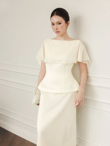 - Đặc điểm nổi bật: Áo form peplum basic/ - Dây kéo sau lưng/ - Phần bèo dính liền cổ ra đến thân sau, thân sau cổ