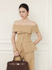 - Đặc điểm nổi bật: Form bẹt vai tùng peplum A/ -Phần vẹt vai ngang có thun co dãn nhẹ để thoải mái hơn/ -Dây kéo sau lưng
