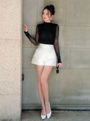- Đặc điểm nổi bật: Áo form ôm cổ co, tay dài/ - Phần thân may 2 lớp, tay áo 1 lớp
