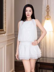 - Đặc điểm nổi bật: Đầm bên trong là cổ yếm form ôm/ - Bên ngoài là Tằm ánh kim/ - Phần tùng có cuốn cước cho bồng bềnh hơn