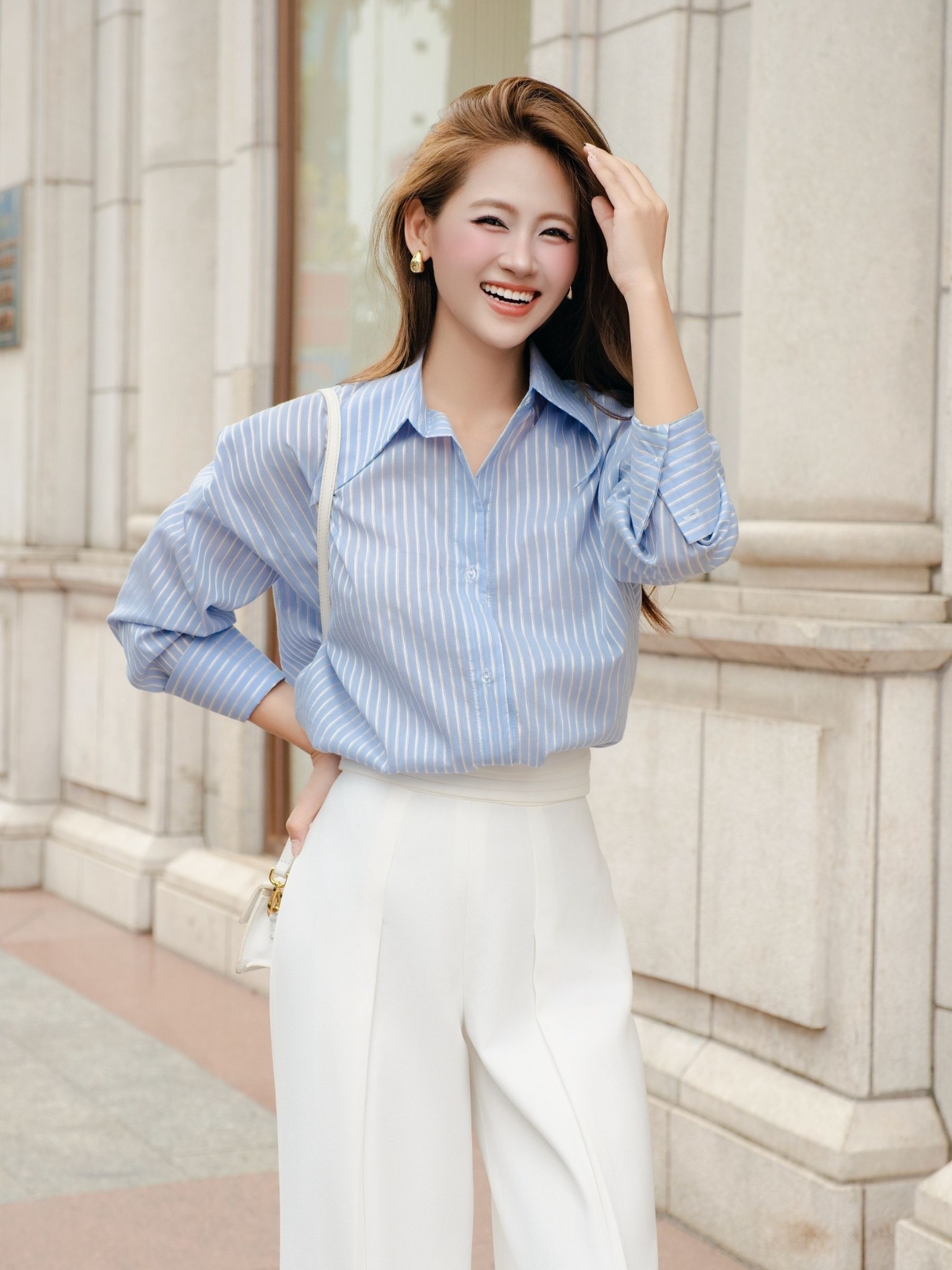 - Đặc điểm nổi bật: Form áo rộng, tay dài/ - Áo vạt bầu, thân sau dài hơn thân trước