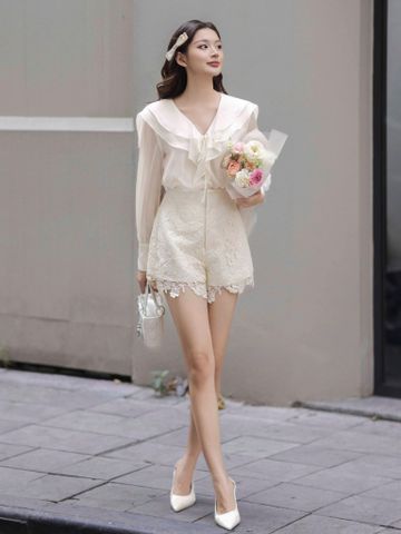 - Đặc điểm nổi bật: Quần short không lưng, lai quần có chân ren