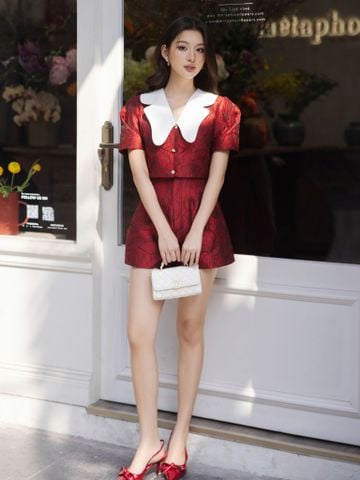 - Đặc điểm nổi bật: Áo phối cổ dáng bướm/ - Form áo croptop không quá ôm/- Dáng quần short form A che khuyết điểm hông và đùi